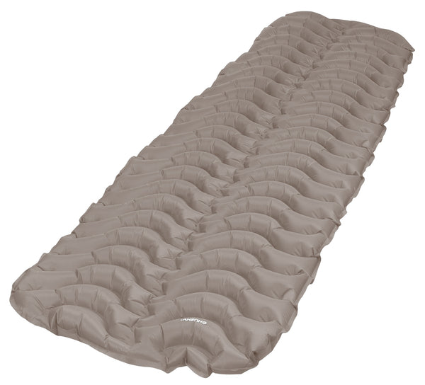 Die aufblasbare Isomatte Flippy eignet sich zum Radfahren, Trekking und für andere Outdooraktivitäten, bei denen jedes Gramm gespart werden muss. Die Luftkammern bieten Ihnen Schlafkomfort und optimale Wärmeisolierung. Damit steigert sie die Erholungsqualität überall und jederzeit auf das Maximum. Für das Aufblasen können Sie eine Elektrische Pumpe AIRFLOW kaufen. Eigenschaften: 8,5 cm dicke Dämmschicht gegen Kälte und für unebenes Gelände. Hergestellt aus 20D 380T Nylon Ripstop mit TPU-Beschichtung Die verwendeten hochwertigen Materialien sorgen für eine hohe Widerstandsfähigkeit und Verwendbarkeit in unterschiedlichem Gelände. Mit ihren kompakten Abmessungen und kleinem Transportvolumen passt sie in jeden Rucksack. Ein intelligentes Ventil erleichtert das Aufblasen und Verpacken der Isomatte. Wärmedurchgangswiderstand 6 – das ist der größte Vorteil dieser Isomatte