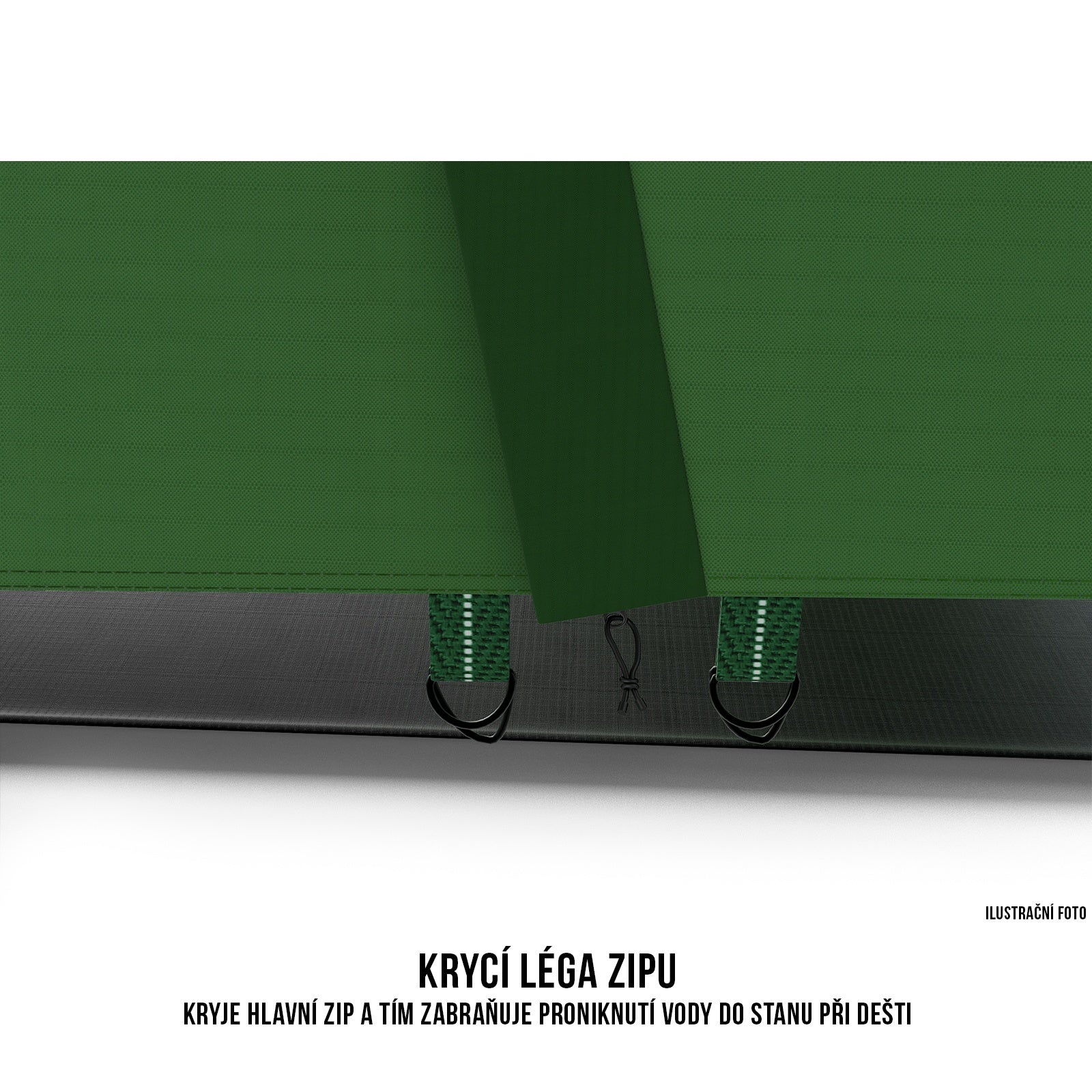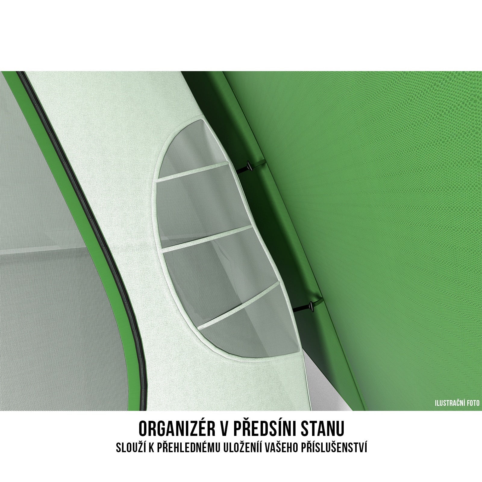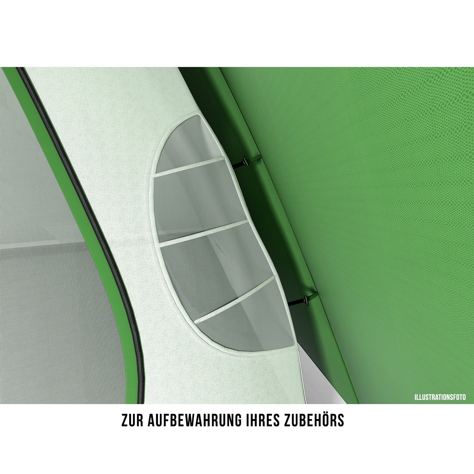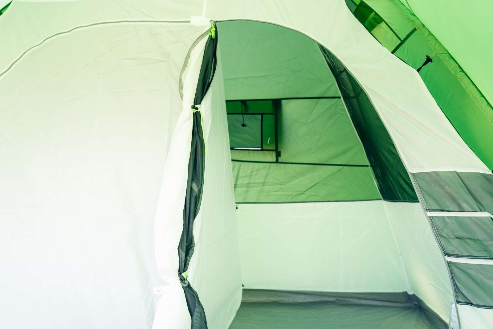 Das Familienzelt Bigless 5 bietet Ihnen Platz und Komfort. Es eignet sich für Familien mit Kindern, Gruppen von Freunden oder Angler für längere Aufenthalte auf dem Campingplatz oder in der Natur. Es verfügt über einen Haupteingang und im Inneren finden Sie ein großer Vorraum und eine herausnehmbare Schlafkabine. Dieses doppelwandige, selbsttragende Zelt mit Außenkonstruktion bietet bequem Platz für fünf Erwachsene. Eigenschaften des Bigless 5-Zeltes: Die Stabilität auch bei schlechtem Wetter wird durch eine stabile, selbsttragende Struktur mit verstärkten Durawrap-Stangen gewährleistet. Das Design ermöglicht eine einfache Handhabung auch des bereits aufgebauten Zeltes. Die Polyurethan-Beschichtung des Außenzeltes verhindert das Eindringen von Wasser. Die hochwertigen Materialien, aus denen das Zelt besteht, garantieren hohe Widerstandsfähigkeit gegen äußere Einflüsse, Atmungsaktivität und Komfort. Ein großzügiger Vorraum mit festem Boden und großen Glimmerfenstern eignet sich zur Aufbewahrung aller Notwendigkeiten. In der herausnehmbaren Schlafkabine kann sich eine erwachsene Person problemlos aufrichten. Komfortabler Innenraum für fünf Personen und Gepäck.
