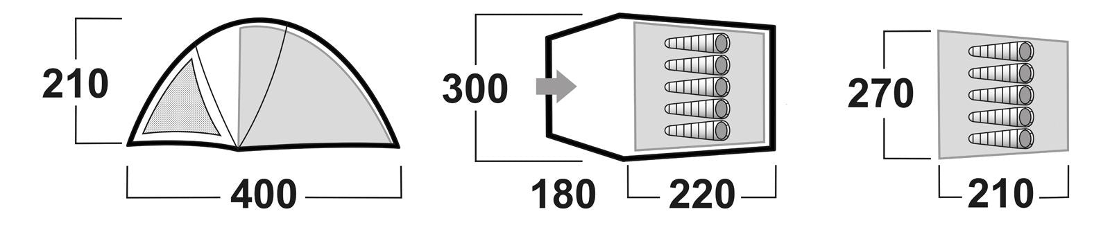 Abmessungen: (B × L × H) 300 × 400 × 210 cm