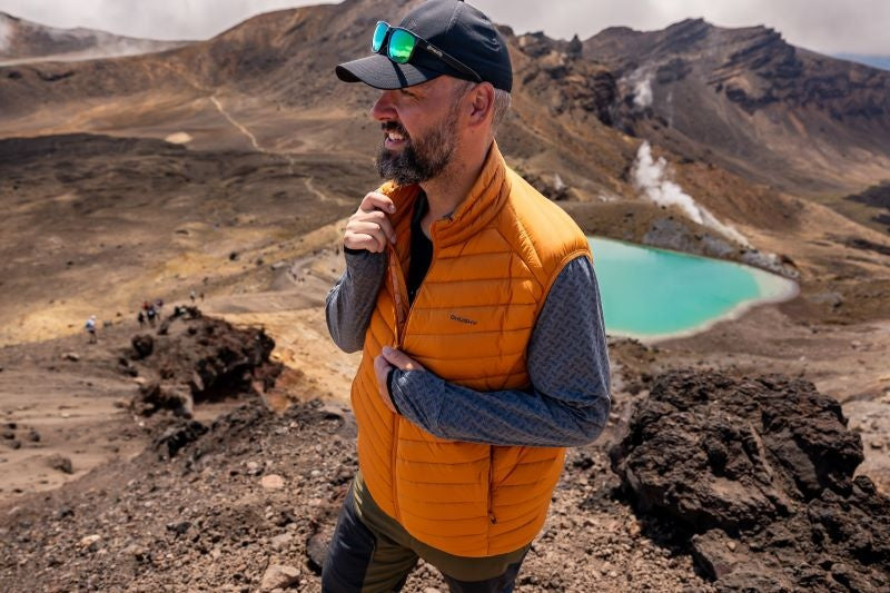 Leichte Herrenweste mit Reißverschluss, geeignet für Wanderungen und andere Outdoor-Aktivitäten an kühleren Tagen.