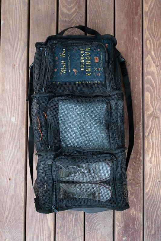 Das TOWER-Aufbewahrungssystem sorgt mit drei separaten Fächern aus atmungsaktivem Netzgewebe für Ordnung und Übersicht im Gepäck. Die einzelnen Fächer sind mit Reißverschlüssen und ausreichend starken Trennwänden ausgestattet, so dass alles ordentlich an seinem Platz bleibt und Sie einen perfekten Überblick haben. Eigenschaften: Praktischer Gepäckorganisator mit verstellbaren Gurten zur Befestigung. Hergestellt aus widerstandsfähigem Polyester. Trageschlaufe. Leicht und atmungsaktiv.