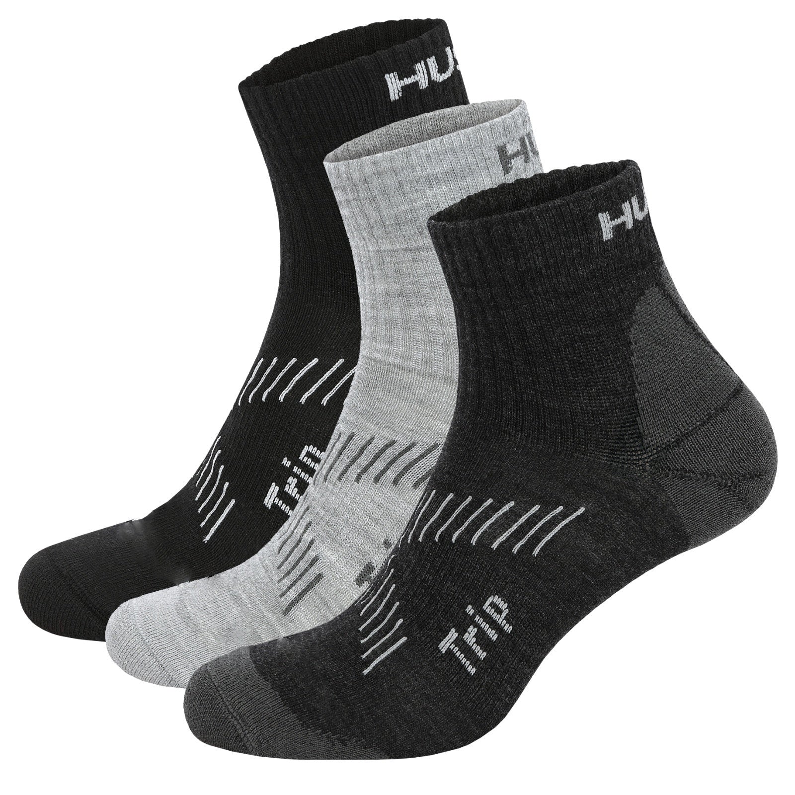 Trip sind dünnere Socken, die bis über den Knöchel reichen. Sie haben einen verstärkten Fußbereich für ein weiches Auftreten und einen verstärkten Spannbereich, um ein Ausrutschen zu verhindern. Sie sind aus einer Fasermischung mit Merinowolle hergestellt, die für Komfort bei aktiver Bewegung und leichten Aktivitäten sorgt.
