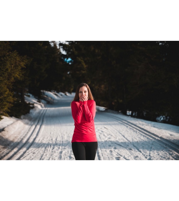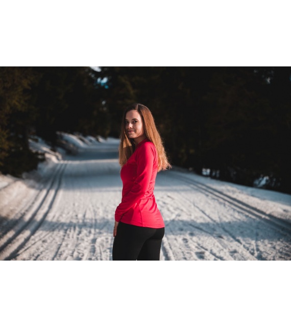 Warmes Damen-T-Shirt mit langen Ärmeln aus unserer Active Winter Thermounterwäschekollektion für verschiedene Outdoor-Aktivitäten von Herbst bis Frühling.