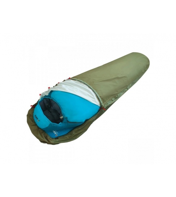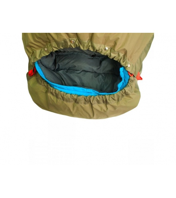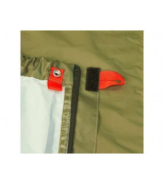 Reißverschlüsse auf beiden Seiten sind mit einer Leiste abgedeckt und ermöglichen eine bequeme Nutzung. Auf der linken Seite reicht der Reißverschluss fast bis zu den Füßen, um mit einem Schlafsack mit linksseitigem Reißverschluss kompatibel zu sein. Der Sack ist groß genug für alle Arten von Schlafsäcken und Sie können auch eine Isomatte und einige persönliche Gegenstände darin verstauen. Innentasche für Dokumente. Moskitonetz im Kopfbereich.