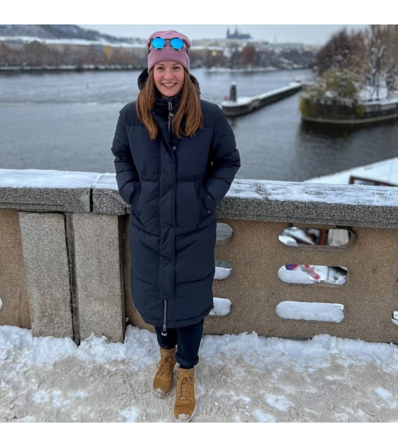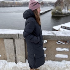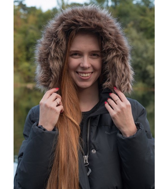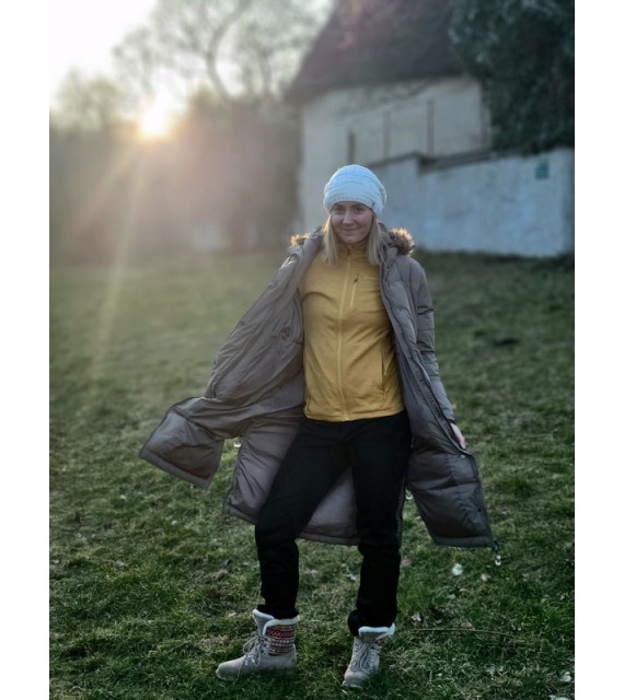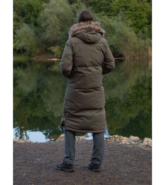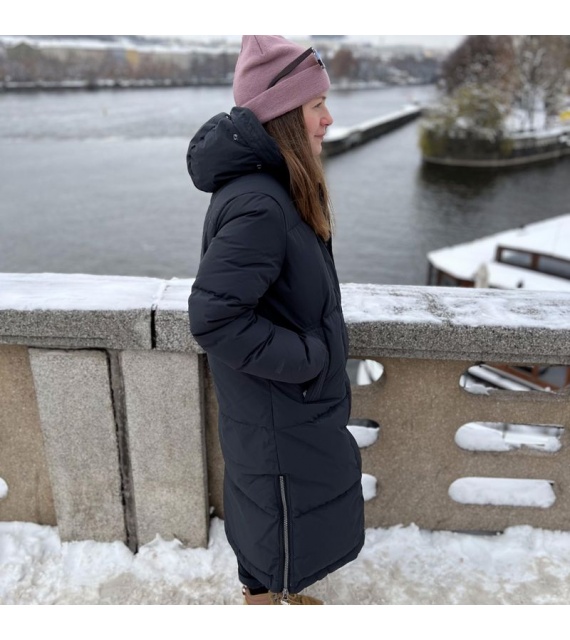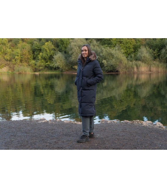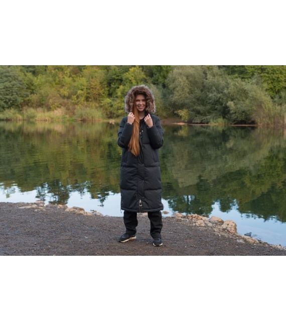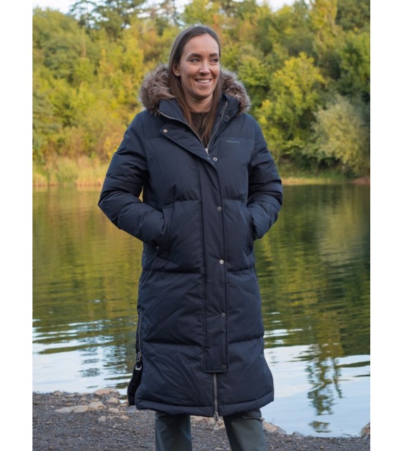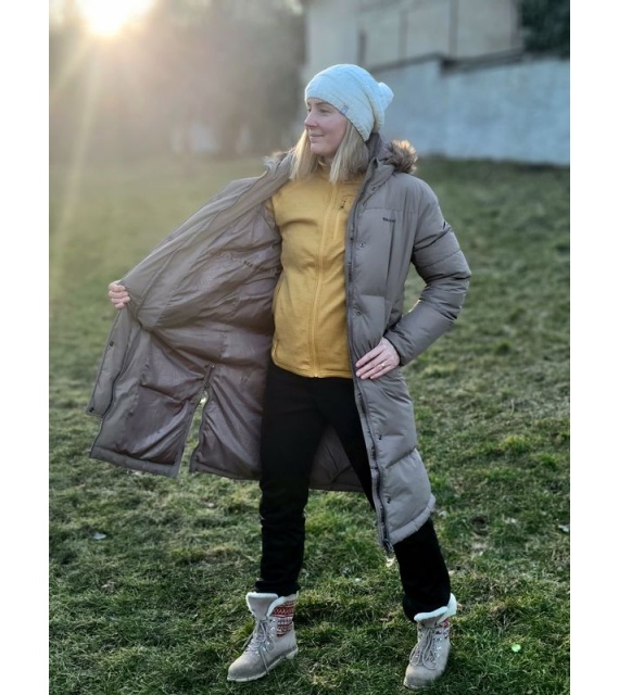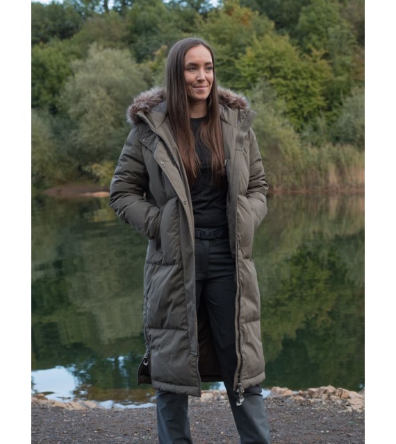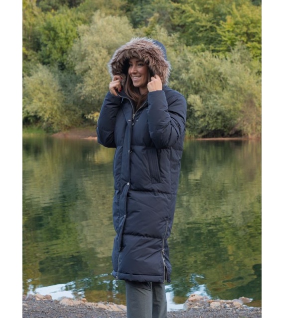 Warmer Damenmantel mit Entenfedern und Fell für den Alltag in der Stadt, aber auch für die Natur.