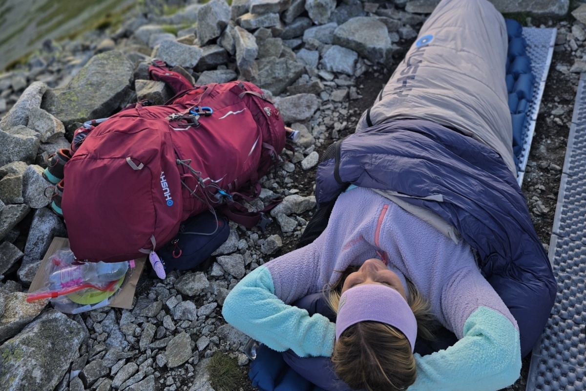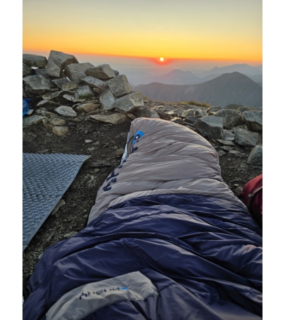 Ein leichter, warmer Schlafsack, gefüllt mit hochwertigen Entenfedern, der auch extremen Bedingungen standhält.