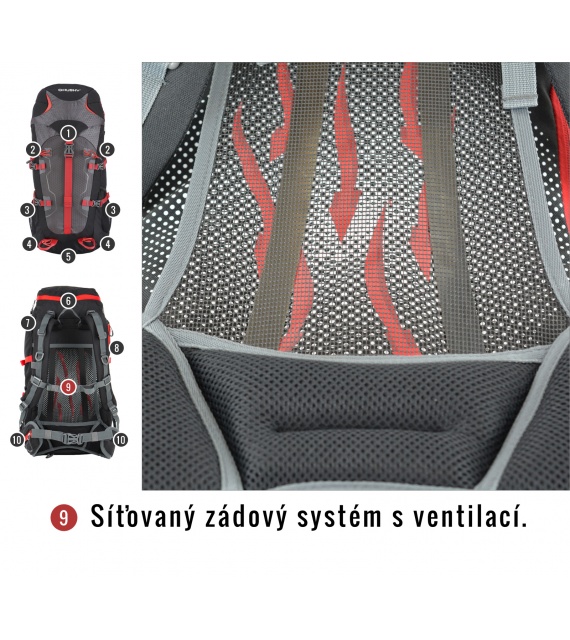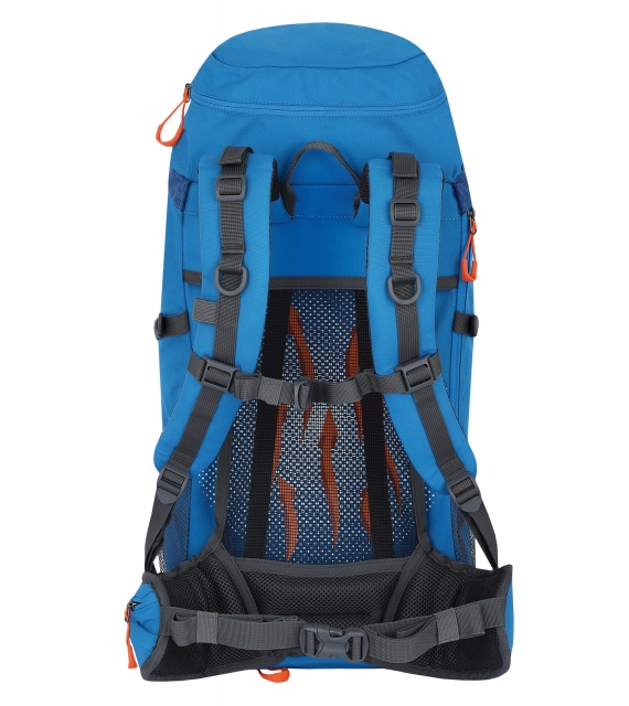 Ein Mesh-Rückensystem, dessen Konstruktion einzigartig ist. Es wird durch zwei Duraluminium-Verstärkungen fixiert, die den Körper des Rucksacks von dem am Rücken anliegenden Netz fernhalten. So entsteht ein Zwischenraum, in dem die Luft zwischen Rücken und Rucksack frei zirkulieren kann. Darüber hinaus verfügt das System über eine hervorragende Formanpassungsfähigkeit.
