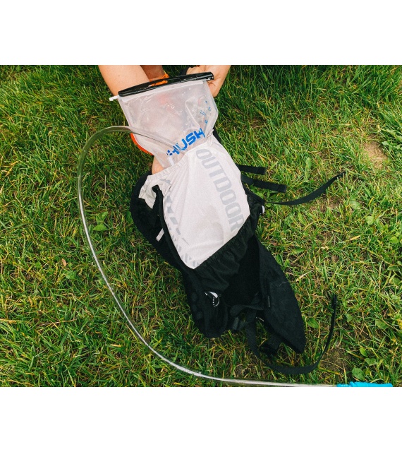 Wasserbeutel für die Mitnahme notwendiger Flüssigkeiten, bequem im Rucksack untergebracht. Die oben befindliche Füllöffnung mit dichtem Verschluss ermöglicht ein bequemes Befüllen des Beutels.