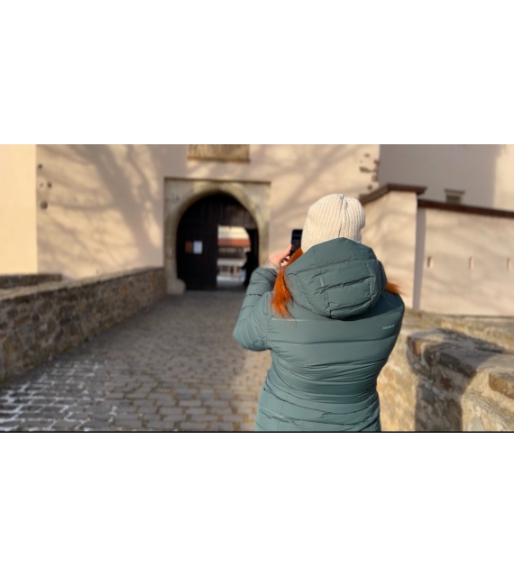 Warme Damenjacke mit Entenfedern und wasserdichter Membran für den Alltag in der Stadt und in der Natur.