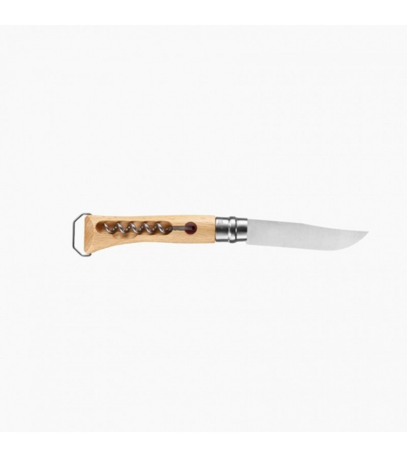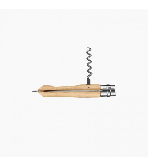Outdoor-Klappmesser mit Buchenholzgriff, 10 cm Edelstahlklinge, mit stabilem Korkenzieher und Flaschenöffner. Ausgestattet mit einem Virobloc-Sicherheitsring. Ideal für Outdoor-Gourmets beim Servieren von Käse und Wein.