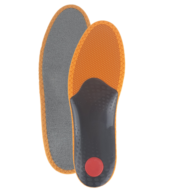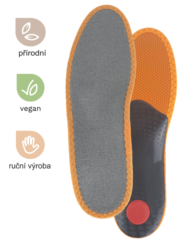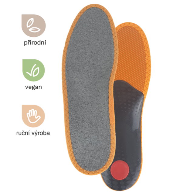 Exklusive orthopädische Einlegesohle mit Memory-Schaum für ganzjährigen Tragekomfort. Die anatomische Form bietet maximalen Komfort durch die Unterstützung von 3 empfindlichen Zonen (Quergewölbe + Längsgewölbe und Fersenpolsterung) in Kombination mit weichem Memory-Schaum, der Stöße dämpft und sich ständig an die Form Ihres Fußes anpasst. Diese perfekte Kombination lindert effektiv den Druck auf Knöchel, Knie, Wirbelsäule und beugt allgemeiner Ermüdung vor. Die Oberfläche besteht aus feinen Bambusfasern – diese absorbieren im Vergleich zu herkömmlicher Baumwolle 2x mehr Feuchtigkeit, trocknen schneller und sind von Natur aus antibakteriell, daher sind auch optimale Hygiene und ein frisches Gefühl im Schuh garantiert.