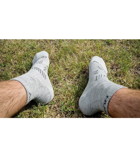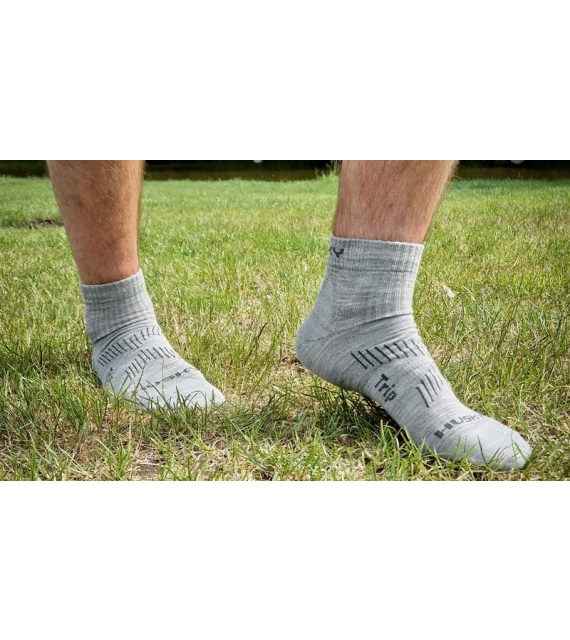 Trip sind dünnere Socken, die bis über den Knöchel reichen. Sie haben einen verstärkten Fußbereich für ein weiches Auftreten und einen verstärkten Spannbereich, um ein Ausrutschen zu verhindern. Sie sind aus einer Fasermischung mit Merinowolle hergestellt, die für Komfort bei aktiver Bewegung und leichten Aktivitäten sorgt.