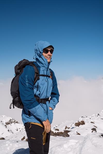 Funktionale Jacke mit Membran, geeignet für ganzjährige Nutzung bei verschiedenen Outdoor-Aktivitäten auch bei extrem ungünstigem Wetter.