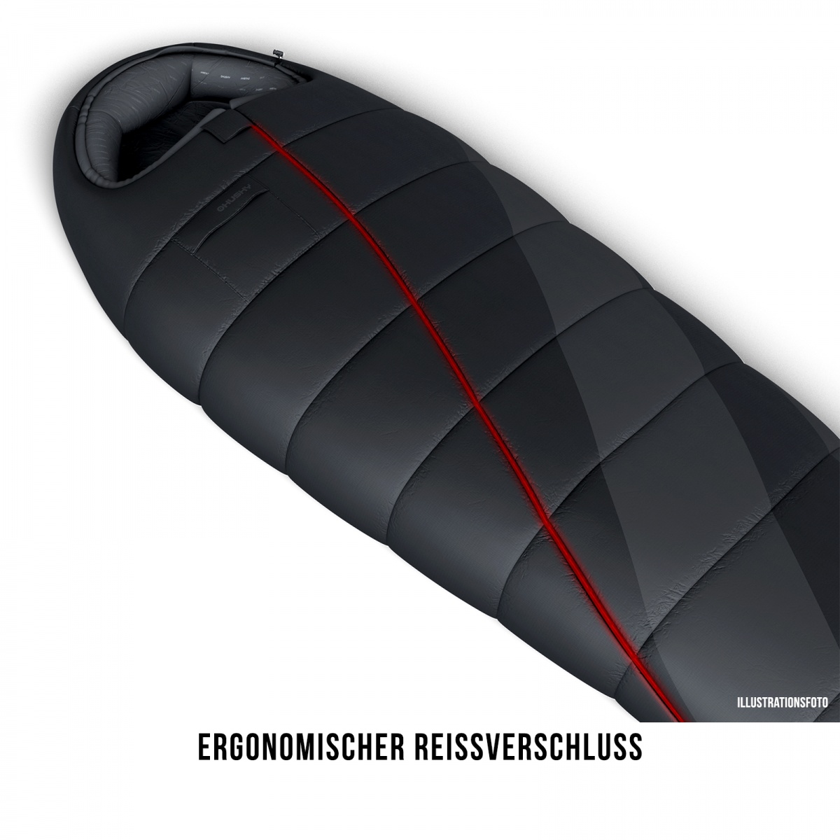 Sehr warmer und bequemer, verlängerter Schlafsack, der für Wanderungen unter rauen Bedingungen geeignet ist.