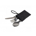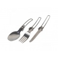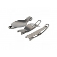 Klein, leicht und platzsparend, aber gleichzeitig ein vollwertiges Edelstahlbesteck. Kein Universallöffel/-Gabel/-Messer, sondern ein normales Besteck, mit dem man auch außerhalb der Zivilisation kultiviert isst. Dank der klappbaren Griffe passt es in kleines Reisegepäck.