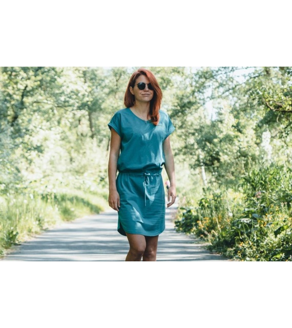 Bequemes Damenkleid, das sich an warmen Sommertagen für den Aufenthalt in der Natur und in der Stadt eignet.