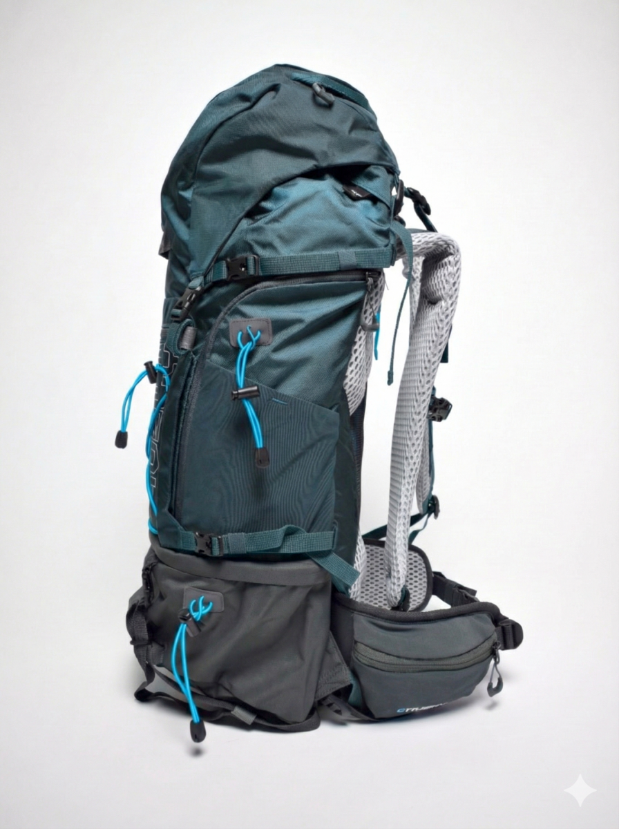 Bequemer und geräumiger Rucksack für Hochgebirgsexpeditionen, Wochenendausflüge in die Natur und Reisen.