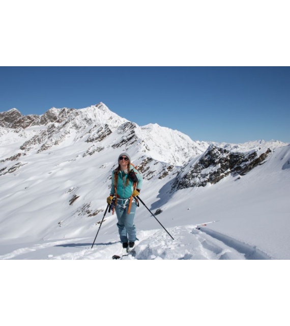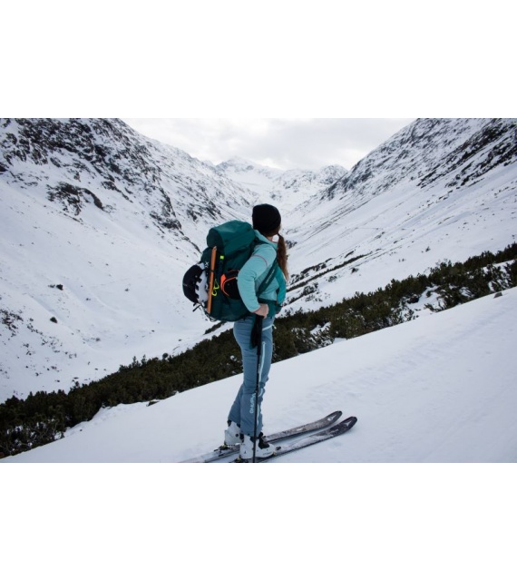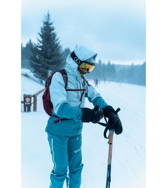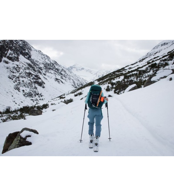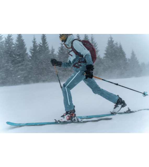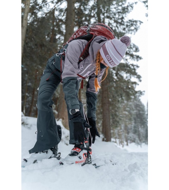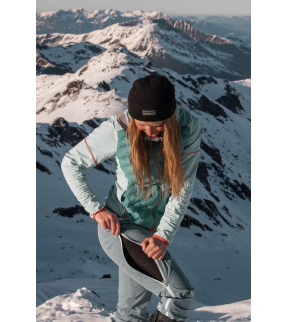 • Der schützende Saum an den Beinen verhindert das Einreißen, wenn die Skier darüberfahren.