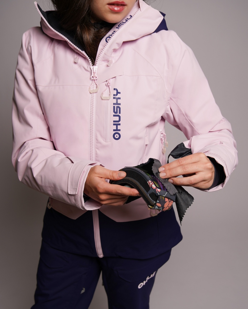 Mittelstark isolierte Jacke für Damen, geeignet zum Skifahren, für Winterwanderungen und andere sportliche Aktivitäten.