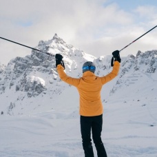 Mittel wärmegedämmte Damenjacke, geeignet zum Skifahren, für Winterwanderungen und andere Sportaktivitäten.