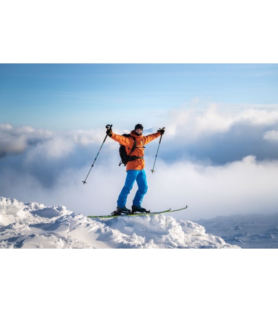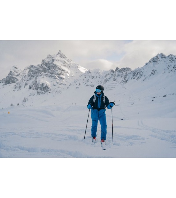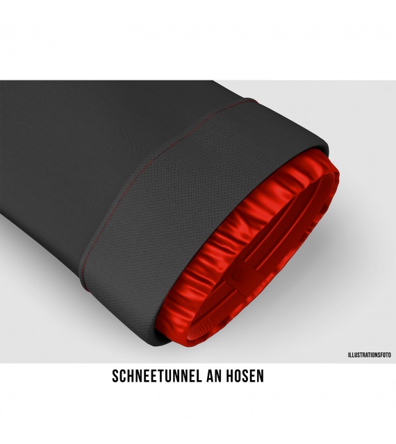 • Der schützende Saum an den Beinen verhindert das Einreißen, wenn die Skier darüberfahren.