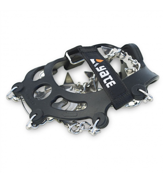 Die Kettenschneeschuhe YATE ICE SPIKES mit langen Stahlspitzen erleichtern das Gehen und Laufen auf Schnee, Eis und in schwierigem Gelände mit Rutschgefahr. Die Spikes verleihen Stabilität und Sicherheit in Gelände, in dem Ausrutschen droht. Sie ersetzen keine Steigeisen, erfüllen aber eine ähnliche Funktion. Die Länge der Spikes beträgt 14 mm, wodurch die Spikes auch im tieferen Schnee ein bequemes Gehen ermöglichen, ohne dass die Spikes mit Schnee verstopfen.