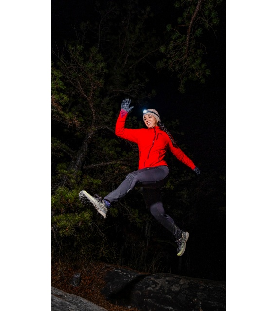 Eine Kopflampe, so bequem, dass Sie vergessen, dass Sie sie tragen. Die Frontlampe misst nur 9 mm. Diese Kopflampe liefert helles Licht, sitzt perfekt – springt nicht, vielseitige Modi und Aufladung via USB sowie ein sehr geringes Gewicht machen sie zu einem unverzichtbaren Begleiter auf jeder Reise. Der Akku befindet sich auf der Rückseite, sodass die Lampe optimal für jedes Abenteuer ausbalanciert ist, vor allem für das Laufen.