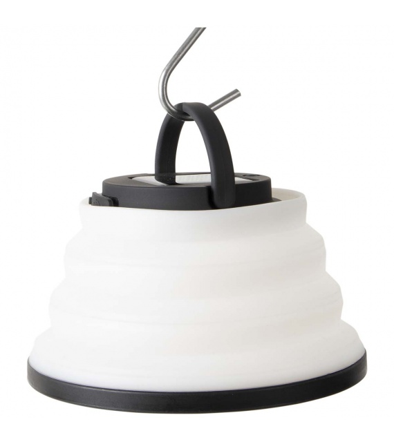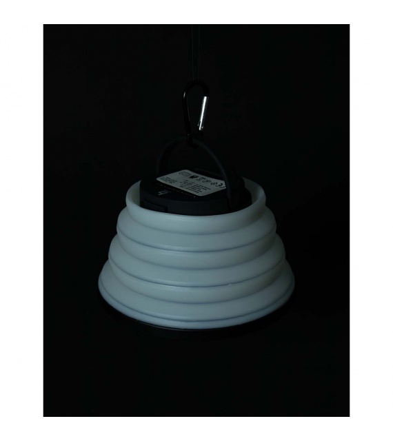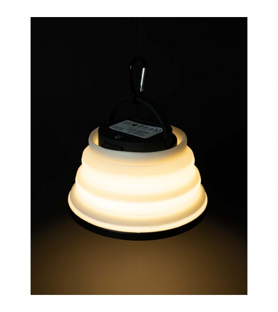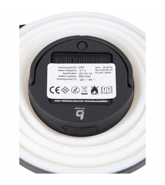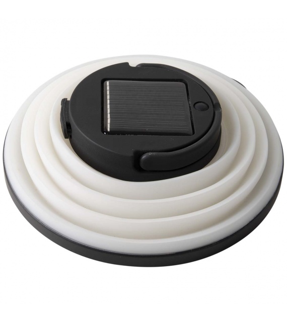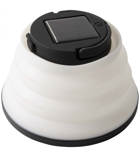 Moderne wiederaufladbare Hängeleuchte mit Solarpanel. Diese Leuchte kann extra flach zusammengeklappt werden, da das Silikon-Gehäuse vollständig zusammengefaltet werden kann. Sie liefert angenehmes warmweißes LED-Licht mit 4 Helligkeitsstufen. Der eingebaute Li-Ionen-Akku kann mit Sonnenenergie oder dem mitgelieferten USB-Kabel aufgeladen werden. Enthält einen Karabiner zum Aufhängen der Leuchte, z. B. an einem Sonnenschirm oder Zelt.