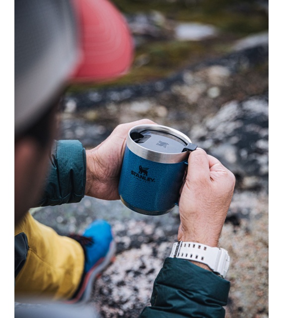 Der STANLEY CAMP MUG 350 ml aus der Classic Serie ist für alle Outdooraktivitäten konzipiert. Leicht, stark, kompakt, zum Entspannen auf dem Campingplatz oder nach einem langen Tag beim Trekking, in elegantem, mattem Schwarz.