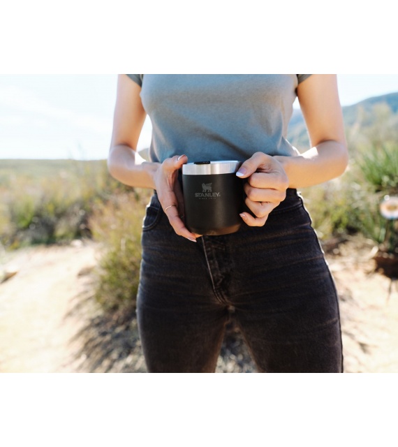Der STANLEY CAMP MUG 350 ml aus der Classic Serie ist für alle Outdooraktivitäten konzipiert. Leicht, stark, kompakt, zum Entspannen auf dem Campingplatz oder nach einem langen Tag beim Trekking, in elegantem, mattem Schwarz.