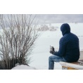 die Thermosflasche hält den Inhalt bis zu 12 Stunden lang heiß oder kalt