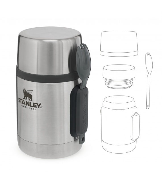 Dieser Lebensmittelbehälter eignet sich hervorragend für eine Person, wenn Sie sich auf ein Abenteuer begeben. Isolierung, die 12 Stunden lang warm hält. Die STANLEY Thermosflasche mit einem Volumen von 530ml mit einem Löffel in einer praktischen Halterung, die vor Verlust schützt und immer zur Hand ist.