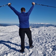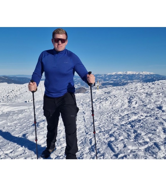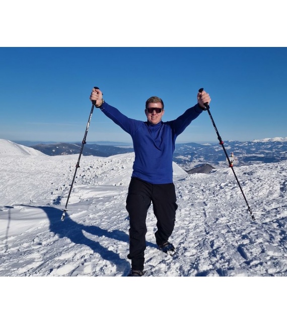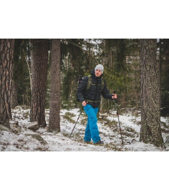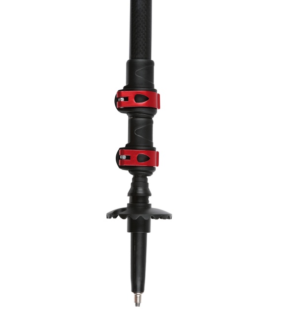 Die Stöcke bestehen aus Kohlefaser, die Spitze aus Wolfram und der Griff aus geformtem EVA