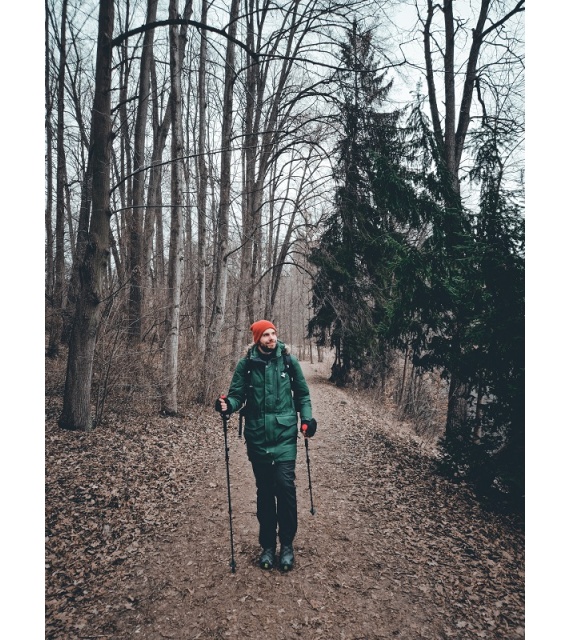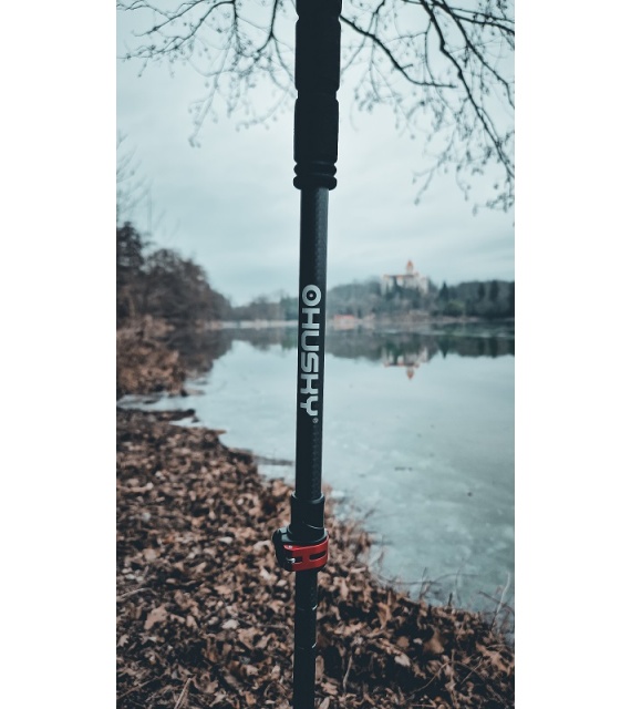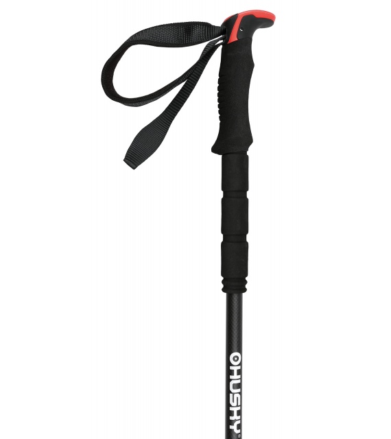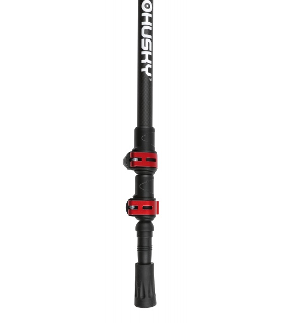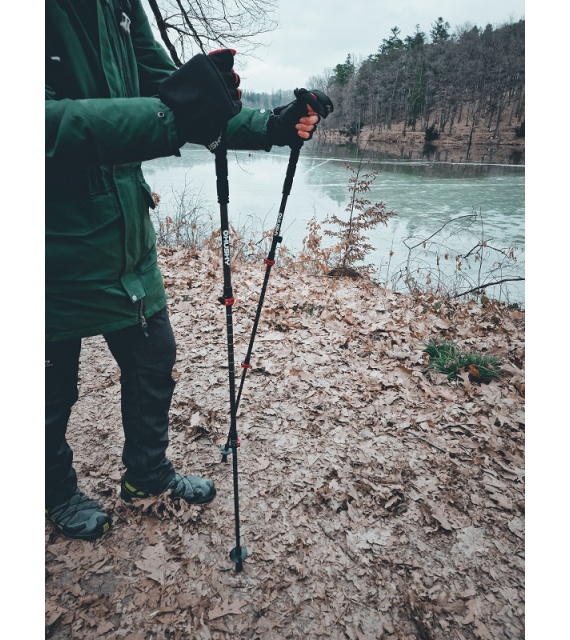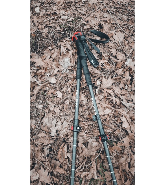 Die Stöcke bestehen aus Kohlefaser, die Spitze aus Wolfram und der Griff aus geformtem EVA + Kunststoffkopf