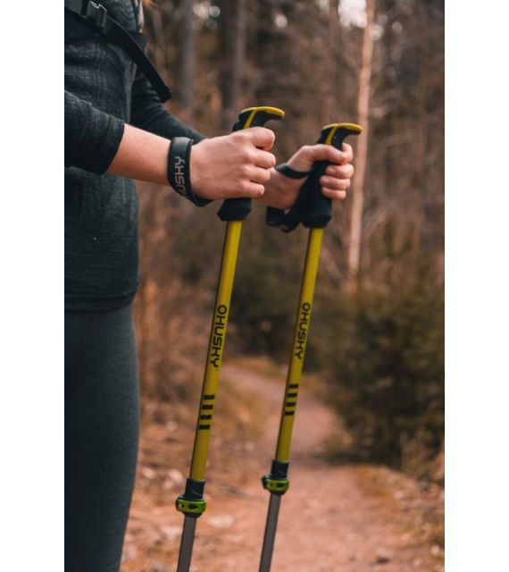 Die Stöcke bestehen aus Aluminium, die Spitze aus Wolfram und der Griff aus geformtem EVA + Kunststoffkopf