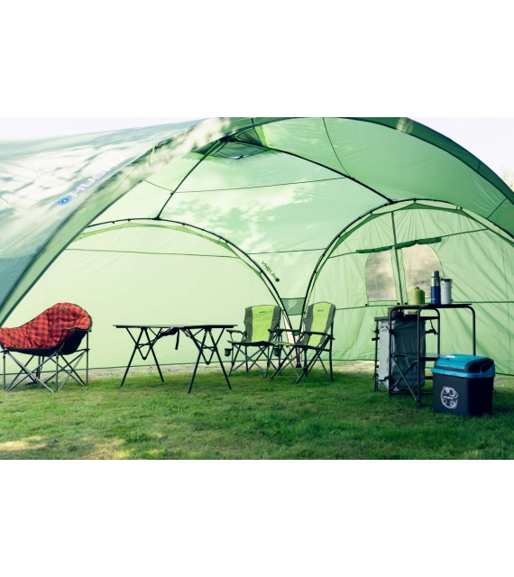 Den Unterstand Broof L können Sie für verschiedene Veranstaltungen im Freien nutzen. Schützt sowohl vor Sonne als auch vor Regen. Dank seines stabilen Designs und seines Verankerungssystems hält es windigem Wetter stand und ermöglicht es Ihnen, mehr Zeit miteinander an der frischen Luft zu verbringen. Der einwandige Unterstand mit Innenkonstruktion wird ohne Zeltwand geliefert, die HIER separat erworben werden kann.