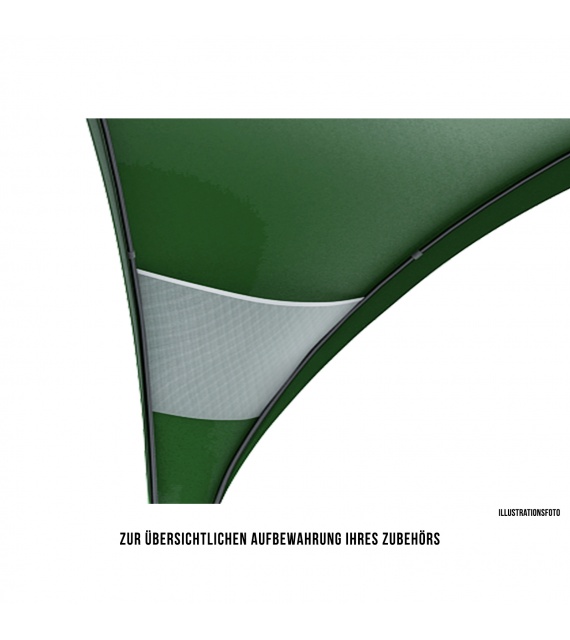 Der Unterstand Broof XL kann für Outdoor-Veranstaltungen verwendet werden und schützt sowohl vor Sonne als auch vor Regen. Dank seines stabilen Designs und seines Verankerungssystems hält es windigem Wetter stand und ermöglicht es Ihnen, mehr Zeit miteinander an der frischen Luft zu verbringen. Der einwandige Unterstand mit Innenkonstruktion wird ohne Zeltwand geliefert, die HIER separat erworben werden kann.
