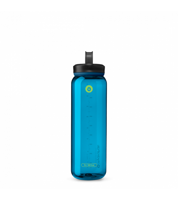 • Dank auslaufsicherem Verschluss mit integriertem Griff und zwei Schlaufen lässt sich die Flasche leicht am Rucksack befestigen oder in der Hand tragen.