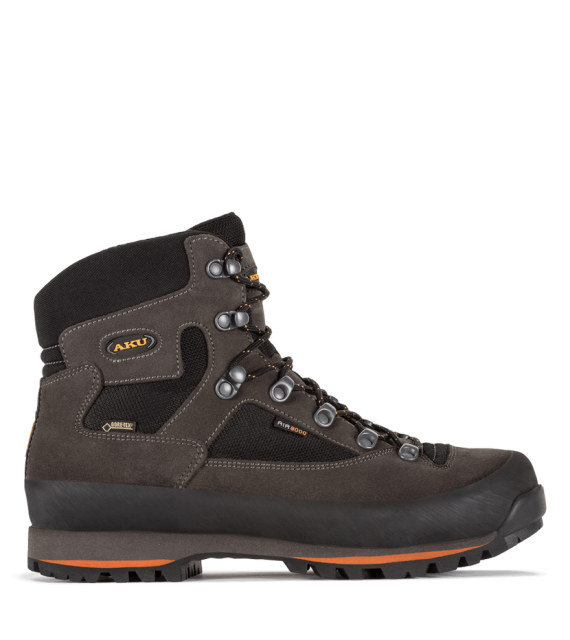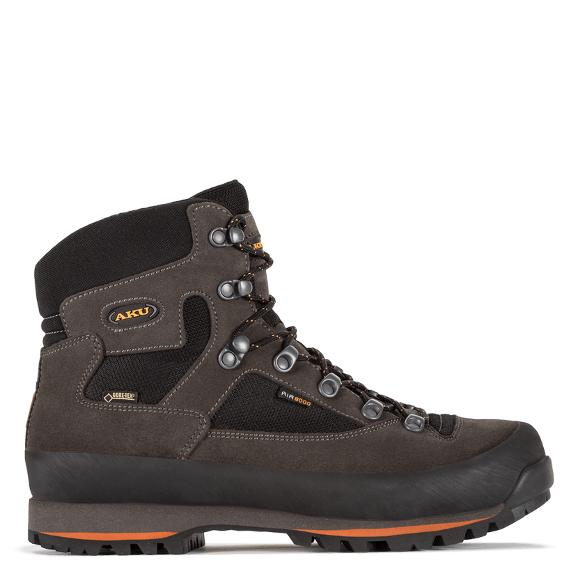 Unzerstörbar. So könnte man das meistverkaufte Modell der Marke AKU – Conero GTX – mit einem Wort beschreiben. Sie wollen nicht jede Saison überlegen, welche neuen Wanderschuhe Sie kaufen sollen? Das Modell Conero hält problemlos fünf, zehn oder sogar fünfzehn Jahre. Es wird Sie tragen, egal ob Sie in den Beskiden, den Tatra-Bergen oder den Alpen unterwegs sind. Dank der Kombination aus einem Obermaterial aus 1,8 Millimeter starkem Nubukleder und dem AIR 8000 Gewebe, das bis zu 11 Mal atmungsaktiver ist als üblicherweise verwendete Materialien, kann Ihr Fuß auch an heißen Sommertagen hervorragend atmen. Selbstverständlich kommt in der Gore-Tex-Fütterung eine wasserdichte Membran zum Einsatz, hier in der Variante Performance Comfort, die Ihnen bei jedem Wetter trockene Füße garantiert. Wie gegen Abrieb ist auch um den gesamten Schuh herum eine robuste Gummibandage angebracht, die Sie im steinigen Gelände schützt. Dank der VIBRAM Foura Sohle und der Verwendung von EVA-Schaum in Kombination mit einer 4-6 mm starken Nylonverstärkung in der Zwischensohle bietet Ihnen der Conero hervorragende Traktion, Schutz und dank der ausgezeichneten Fersenfixierung im Schuh auch Stabilität in sehr unwegsamem Gelände. Die Liebe zum Detail zeigt sich auch in der anatomisch geformten Einlegesohle.
