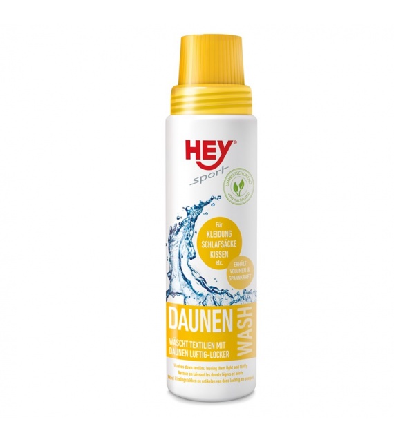 die richtige Pflege aller mit Federn gefüllten Textilien - Daunenjacken, Schlafsäcke, Kopfkissen usw. HEY SPORT® Down Wash bewahrt die Eigenschaften der Daunen, reinigt sie und stellt ihre Funktionalität wieder her. Dadurch werden die Federn nicht brüchig, sie brechen nicht und können keine Klumpen bilden. HEY SPORT® Down Wash ist ein ökologisches, biologisch abbaubares Produkt.