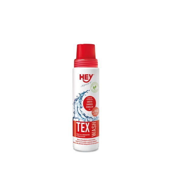 HEY SPORT TEX WASH ist ein Waschmittel, das alle Membrantextilien zuverlässig und gründlich reinigt und dabei die Funktionalität und Farbe dieser Materialien erhält.