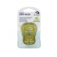 Körpershampoo in Form von fünfzig löslichen Einweg-Blättchen in einer Taschenpackung, die bequem in Handgepäck, Rucksack und Hosentasche passt.