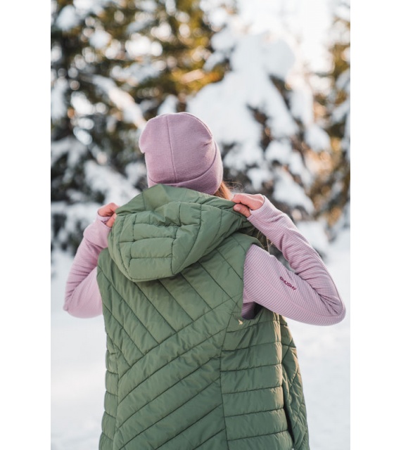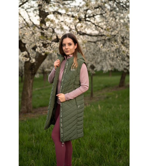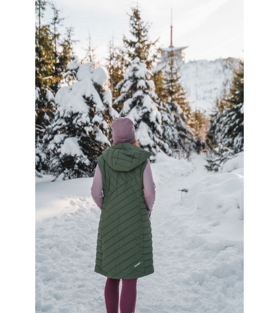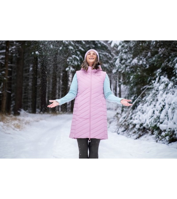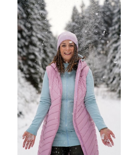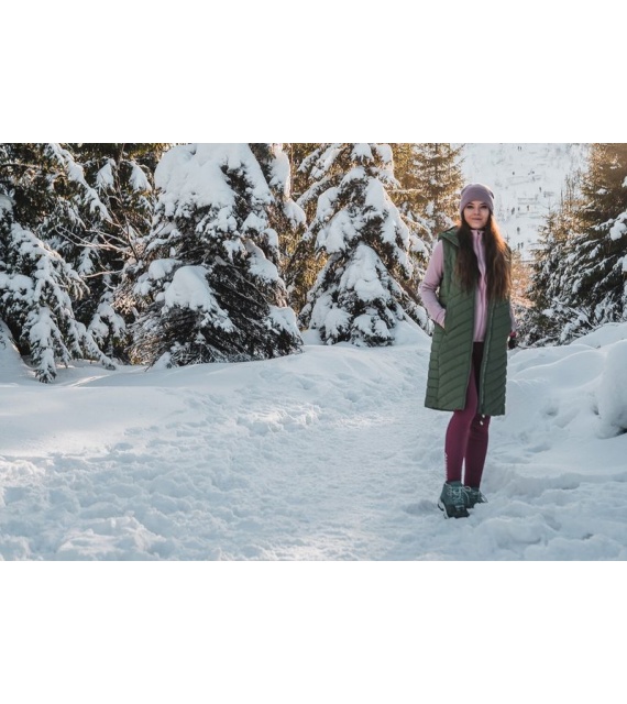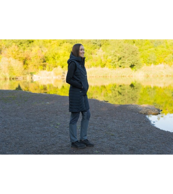 Die lange Damen-Steppweste mit Kapuze NAPI L ist ein Teil, das in Ihrem Kleiderschrank nicht fehlen darf. Die bequeme und warm gefütterte Weste mit Membran wird Sie auf Spaziergängen in der Stadt und bei verschiedenen Outdoor-Aktivitäten begleiten.